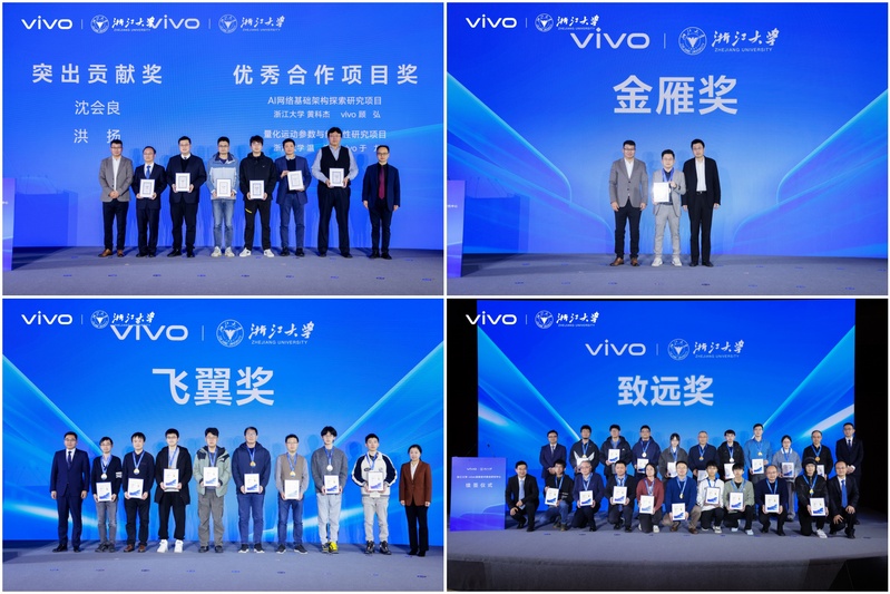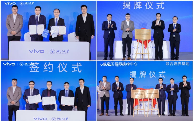 沈会良教授和于猛副总裁代表双方签署《浙江大学-vivo信息技术联合研究中心框架合作协议》,陈刚副校长和胡柏山执行副总裁为中心揭牌。会议还进行了《国家卓越工程师学院电子信息工程师技术中心合作协议》签约和“国家卓越工程师学院电子信息工程师技术中心”“产教融合研究生联合培养基地”揭牌,表彰了多位先进个人和一批优秀项目,启动了v探索计划首批项目。