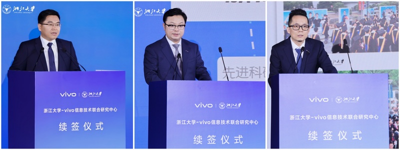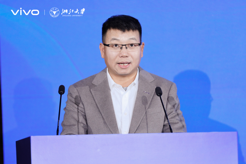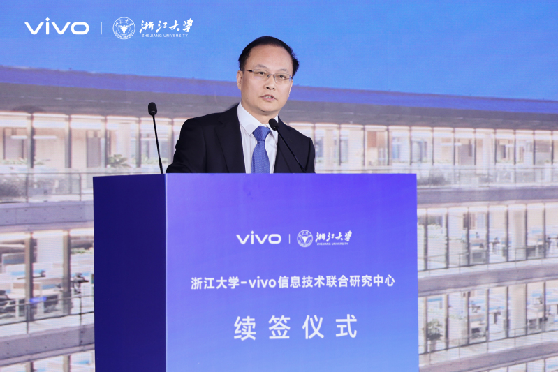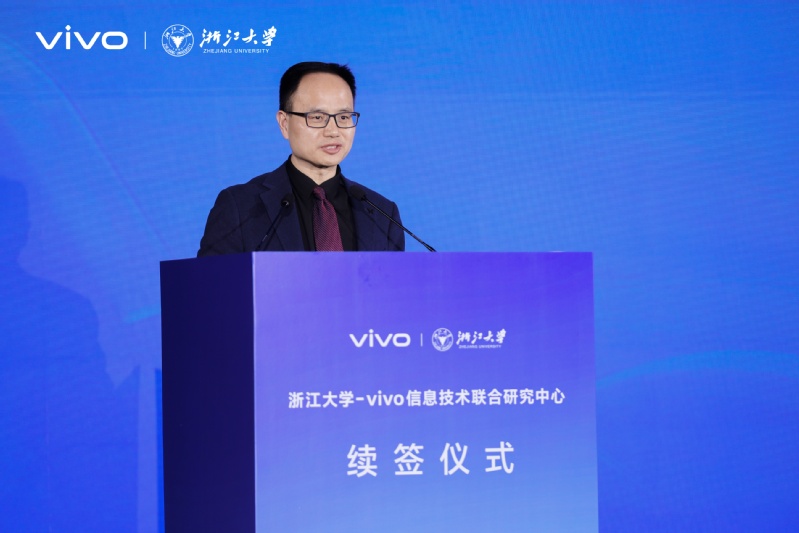 陈刚副校长致辞。他感谢vivo一直以来对浙江大学的发展给予的大力支持,校友企业vivo与母校以联合研发中心的方式加强在科学研究、社会服务、人才培养等方面的合作。他指出,双方要在未来5年合作新征程中面向国家战略和行业需求开展创新研究,加强前沿引领性科研成果支撑科技强国、营造优质的战略合作生态等三方面持续发力,开拓有为,共筑校企合作典范。