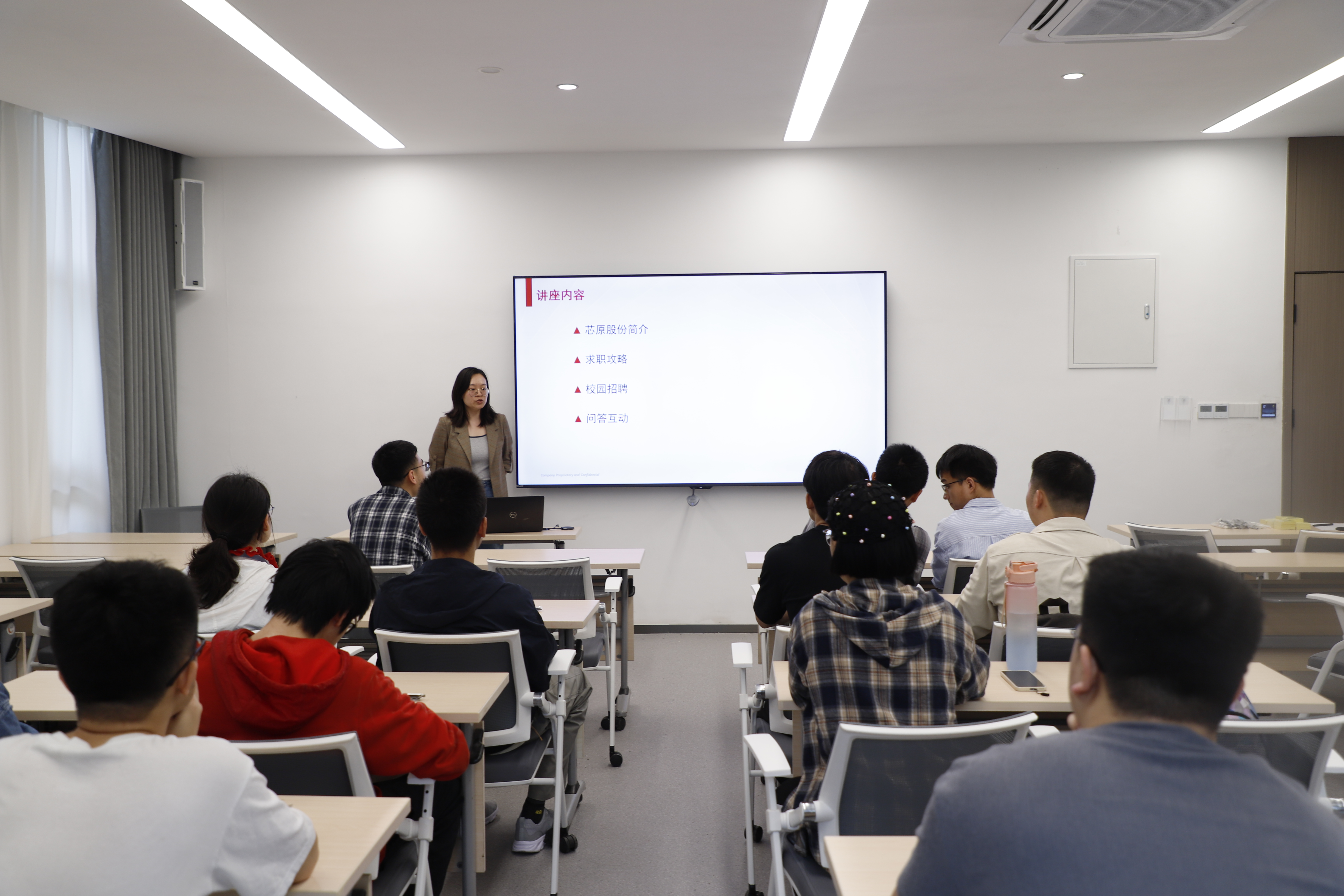 主讲人从公司概括简介、发展策略、校园招聘和问答互动四个维度,介绍了芯原的全球布局、先进工艺适配、战略合作伙伴以及 2025 届校招计划。多位同学就岗位胜任力、培训体系与职业晋升路径进行了提问并获得解答。