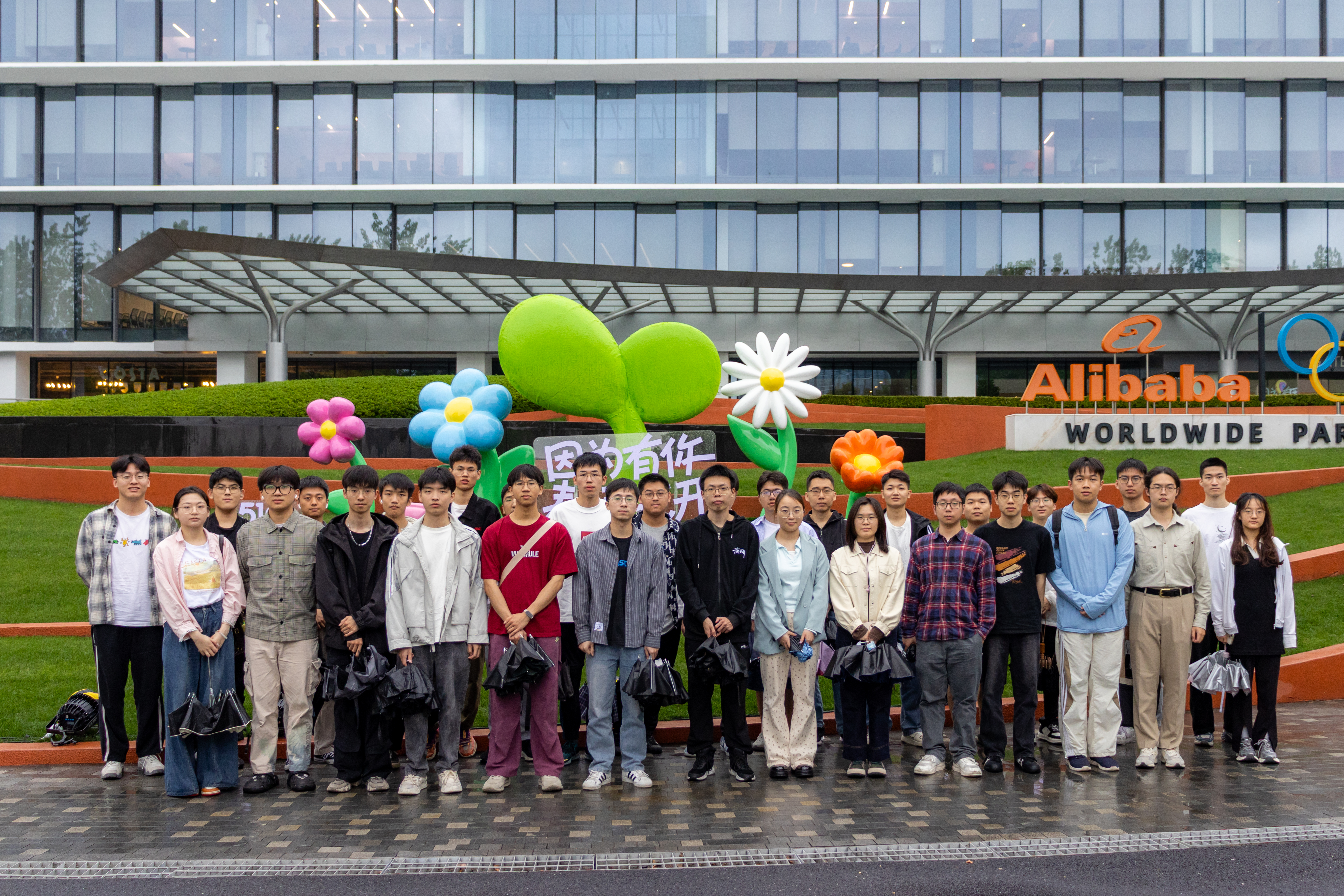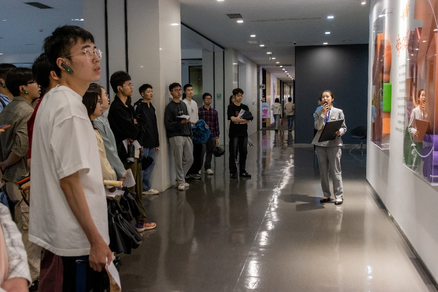 在淘天集团工作人员的引导下,师生一行首先参观了访客中心,全面了解企业的发展历程、技术应用及企业精神。展厅展示内容涵盖了阿里巴巴在电商平台、智能推荐、客户运营等方面的技术成果与应用场景,生动呈现了企业在推动商业数智化转型中的探索与成效。通过实地参访,师生对当前互联网企业的运营模式与发展方向有了更加直观和深入的认识。
