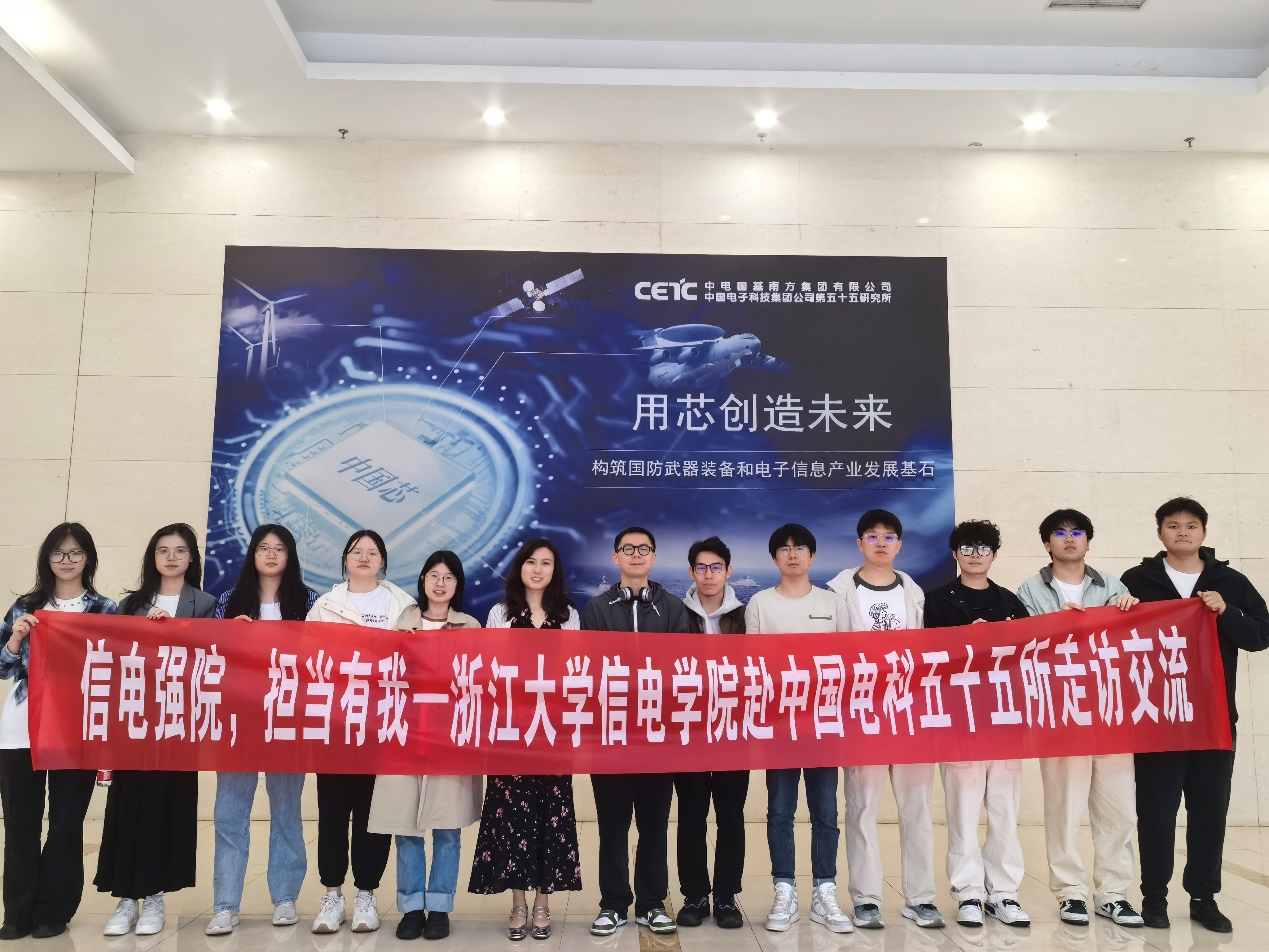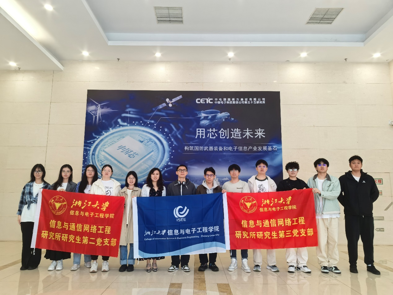 为深入贯彻落实党的二十大关于“强化企业主导的产学研深度融合,推动科技成果转化与产业化”的战略部署,浙江大学信息与电子工程学院聚焦通信电子领域卓越人才培养,以党建引领为纽带,以产教协同为路径,扎实推进高校与企业人才共育、科研共创、就业共促的深度联动。信电学院学工办副主任陈梦瑶老师携信通所研究生第二、第三党支部学生代表一行14人,赴中国电子科技集团公司第十四研究所(简称“十四所”)与第五十五研究所(简称“五十五所”)开展“信电强院,担当有我”主题共建活动,以实践行动践行“科技报国、强国有我”的青春誓言。