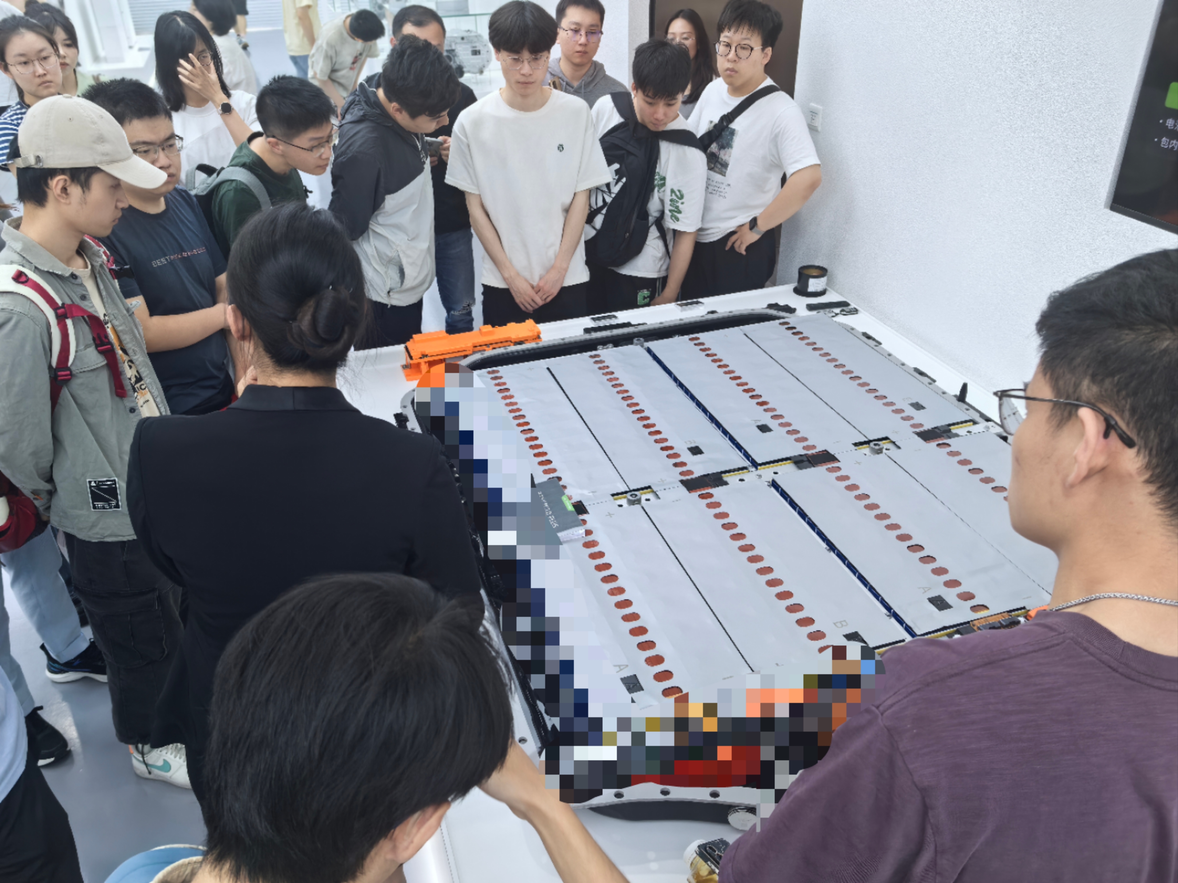 在零跑汽车工程师的带领下,师生们走进核心科技展区。工程师重点展示了零跑自主研发的CTC2.0电池底盘一体化技术,该技术通过无模组设计将电池与底盘深度融合,配合行业独创的“零压”技术和720分钟无热扩散防护,实现了安全性与续航能力的双重突破。在智能驾驶展台,零跑搭载的30颗高性能感知元件及高算力模块吸引了师生目光,其城市NAC导航辅助巡航系统可无高精地图实现全场景驾驶辅助,展现了国产智能驾驶技术的硬核实力。