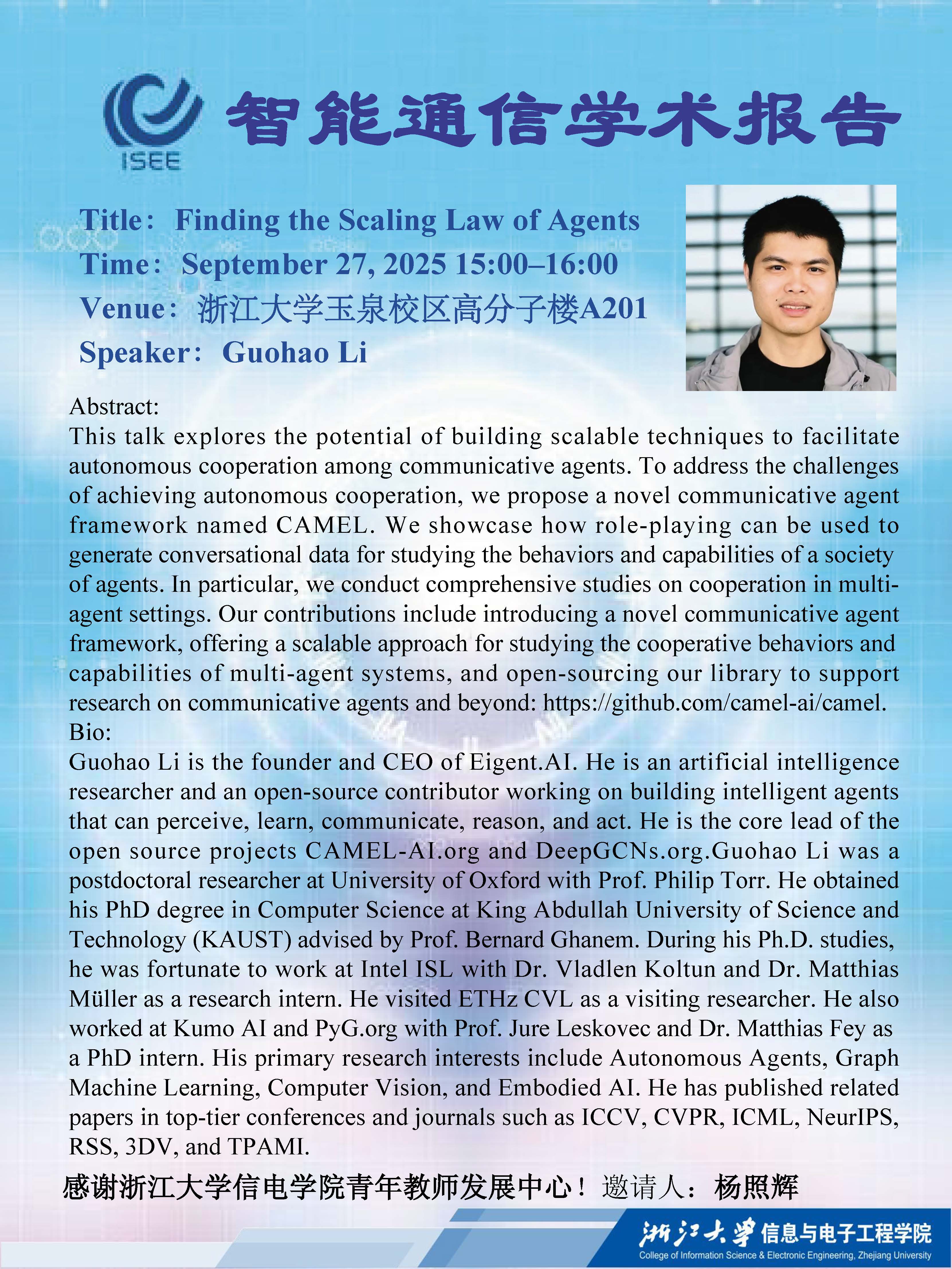 李国豪(CAMEL-AI / Eigent AI创始人)学术报告