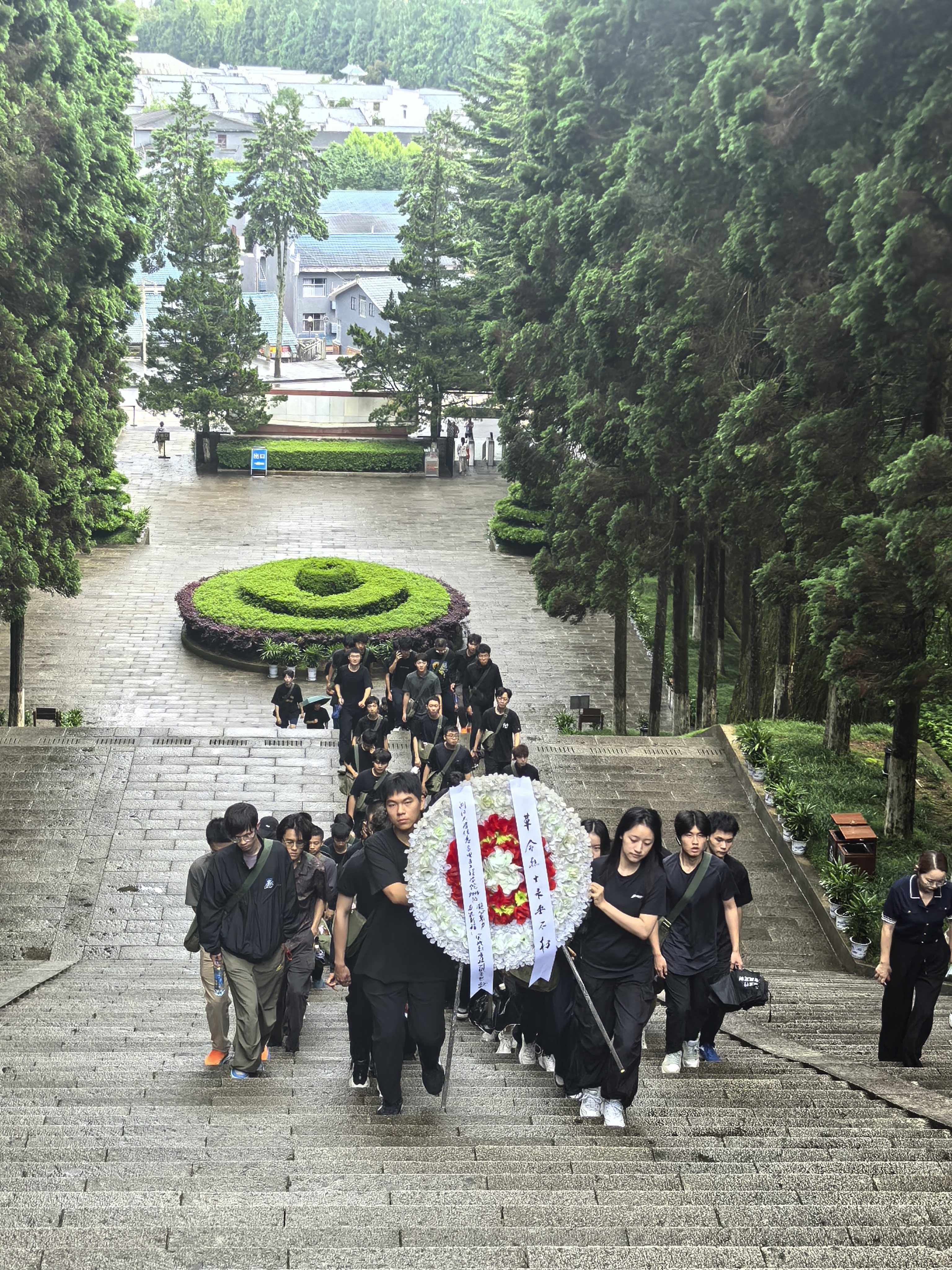 清晨的井冈山革命烈士陵园,松柏苍翠,庄严肃穆。同学们抬着花圈,神情凝重地踏上象征着井冈山革命斗争的109个艰难日夜的109级台阶。在纪念堂内,当听到革命先烈平均年龄只有二十多岁时,许多同学的眼眶湿润了。在宣誓墙前,全体同学举起右拳,重温入团誓词。铿锵的誓言在青山间回荡,与革命先辈的理想信念形成深刻共鸣。