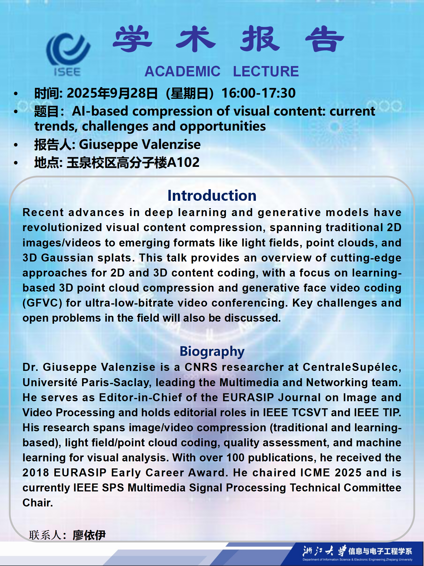 Giuseppe Valenzise (巴黎萨克雷大学)学术报告