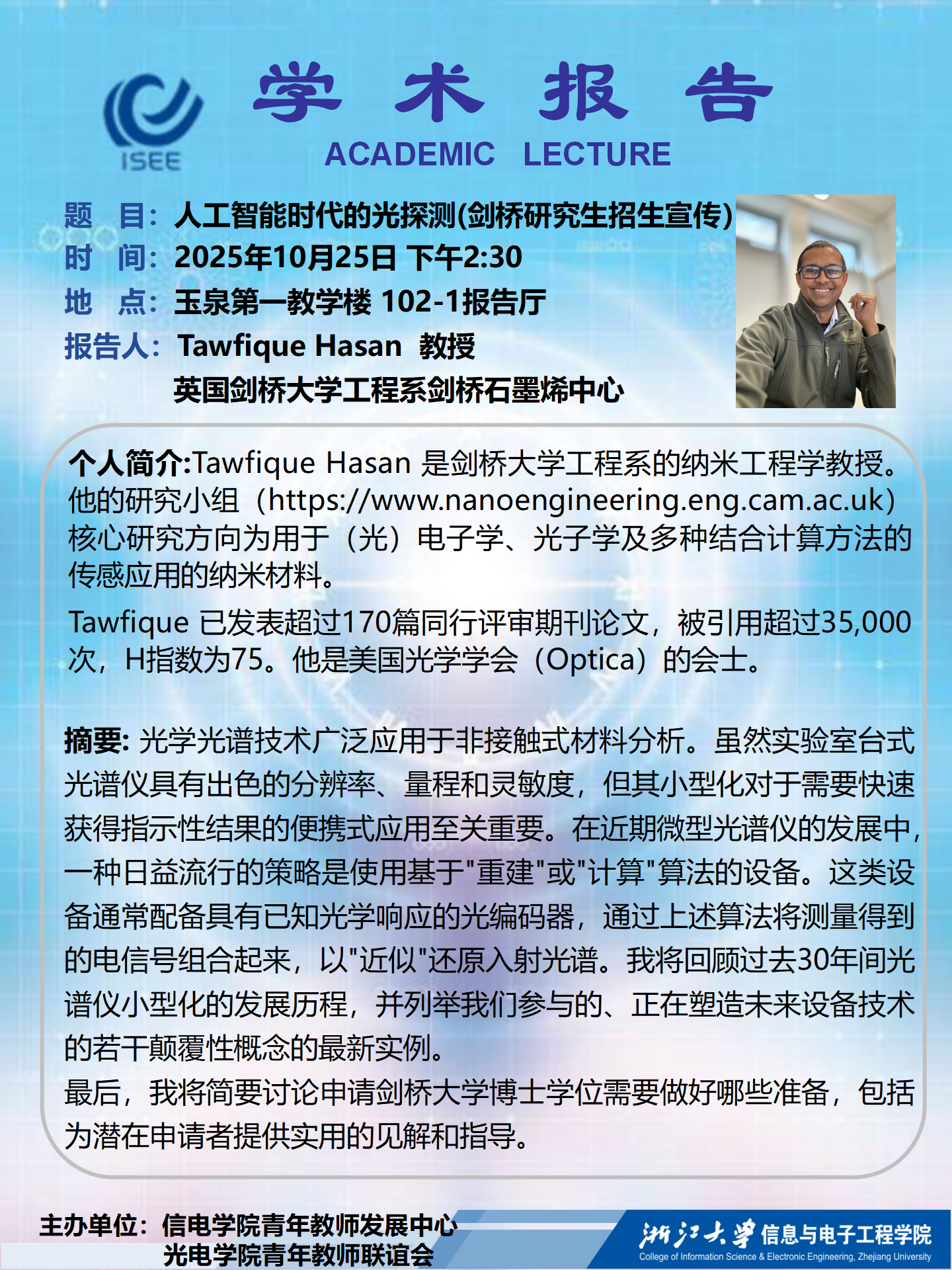 Tawfigue Hasan 教授(英国剑桥大学)学术报告