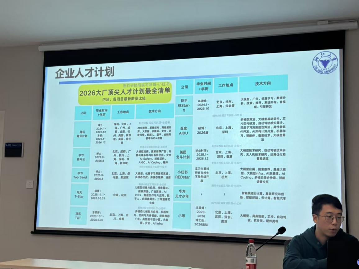 首先,但俊同学从个人在博士五年期间的探索历程切入,从宏观就业形势出发系统性分析了信息领域不同发展方向的特点与趋势。他分享了从课题选择、论文撰写到求职准备的研究生全周期经验,强调持续积累与主动规划在长周期科研中的关键作用,并对就业方向选择与准备等问题与在场同学展开了深入交流。