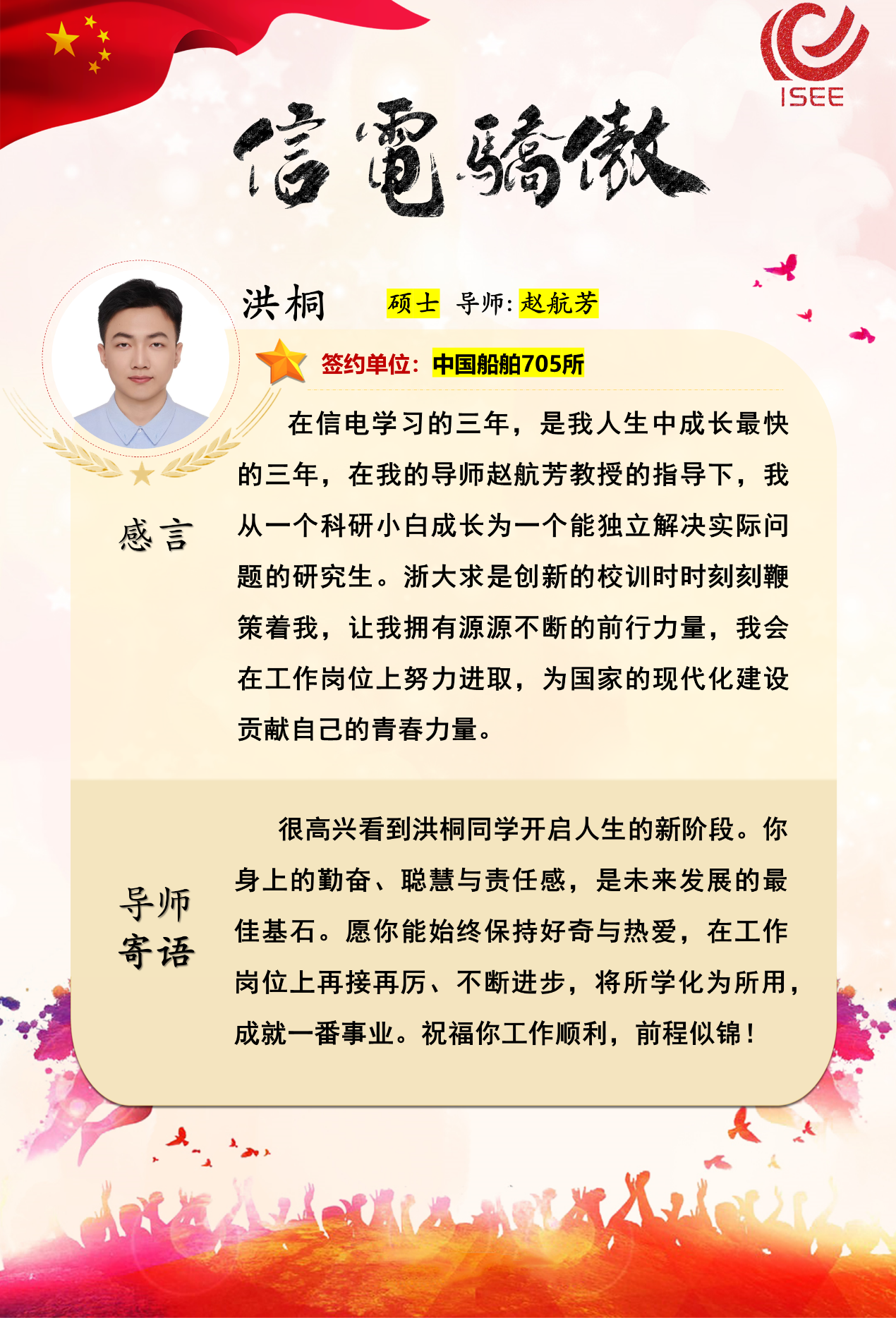 进入工作岗位后,洪桐也时常会回忆起“竺老两问”,思考自己是否践行了求是创新的校训。面对当下百年未有之大变局,国家需要更加强大的水下力量,他也将继续把自己的聪明才智融入国家现代化建设中,为国防安全贡献青春力量。