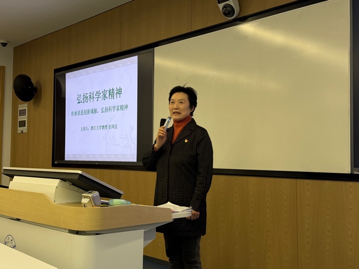 为深入学习习近平新时代中国特色社会主义思想,传承红色基因,引导青年学子坚定理想信念、明确奋斗方向,信电学院于2025年11月25日举办了第18期“笃信论坛”。本次活动邀请了浙江大学关工委副主任、求是宣讲团成员彭凤仪老师作为主讲嘉宾,围绕“传承求是创新魂脉,弘扬科学家精神”这一主题,与信电学院2025级电子系1班硕士生及部分本科生进行了深入交流。