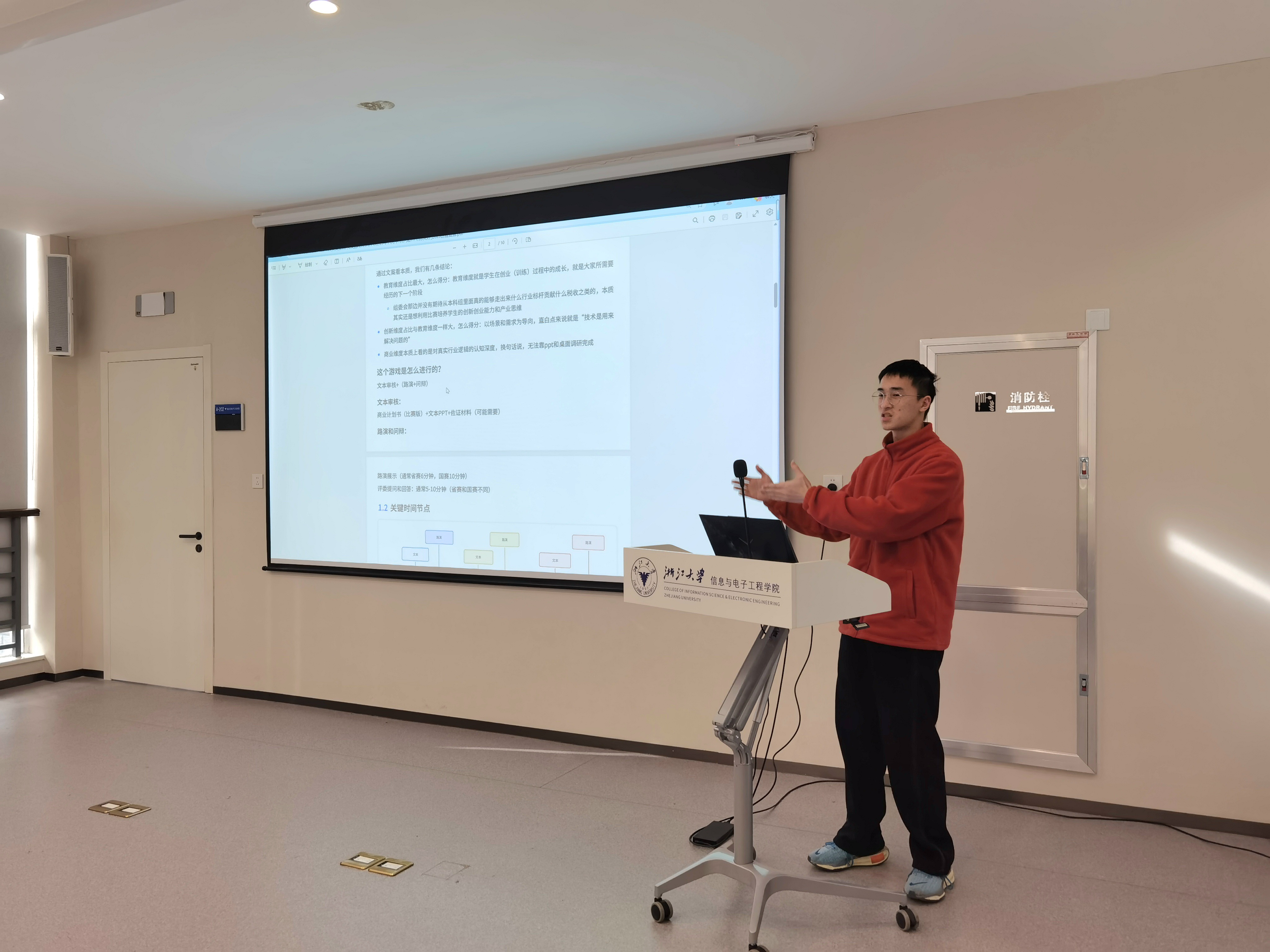 活动伊始,在学科竞赛与创新创业分享环节,钟睿与陈奕好同学结合丰富的实战经历,深入解析了备赛策略与项目落地的关键要素。钟睿同学强调了以“第一性原理”回归问题本质,挖掘创新“痛点”,并重视应用落地与商业逻辑闭环的重要性。陈奕好同学则针对“中国国际大学生创新大赛”等主流赛事进行复盘,分享了从团队组建到项目推进的全流程经验,鼓励同学们以“管理者”视角调动资源,在实践中磨砺创新能力。