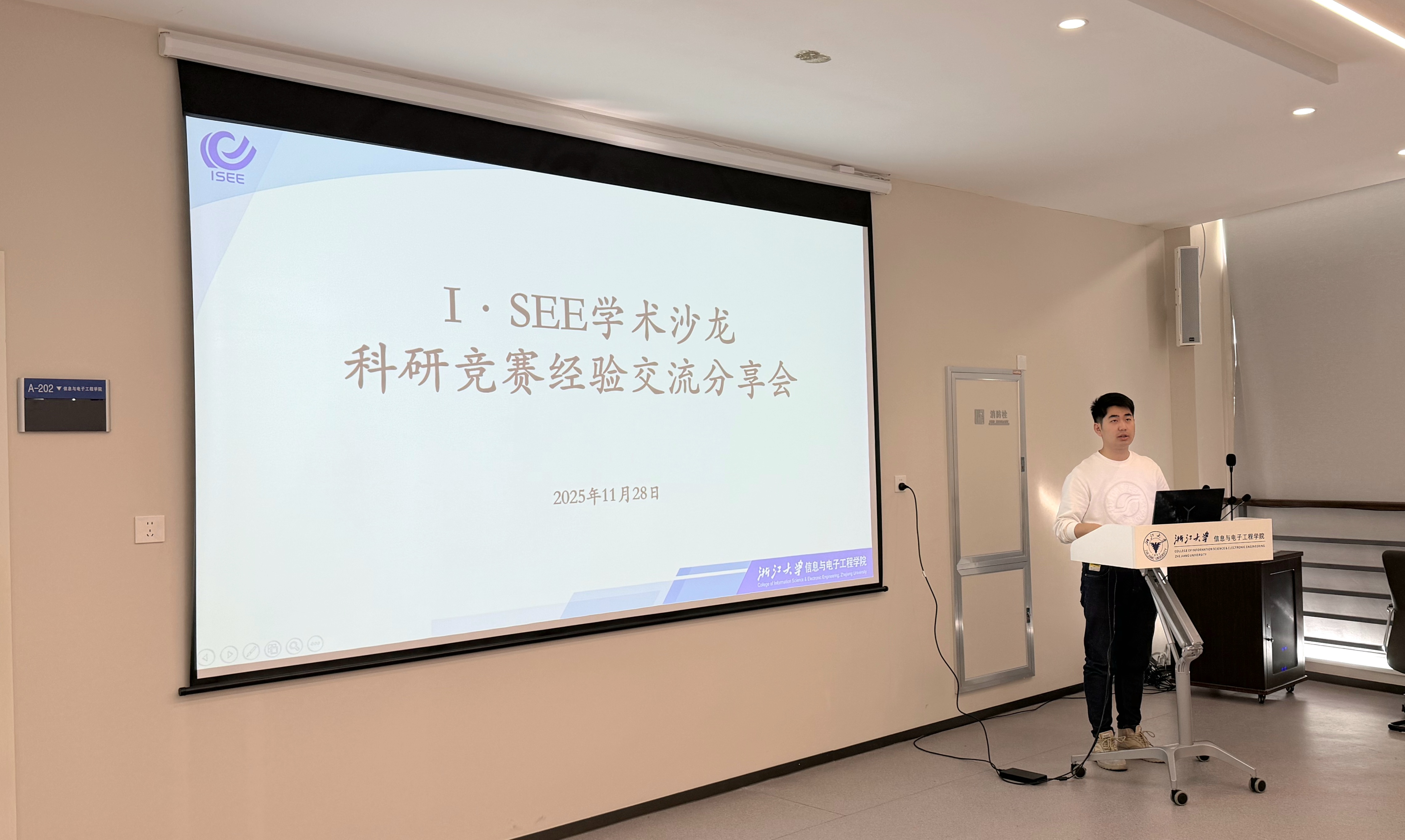 为深入贯彻落实党的二十大关于科教兴国、人才强国战略的部署,进一步营造浓厚的学术科创氛围,激发研究生的创新活力与实践能力,2025年11月28日,浙江大学信息与电子工程学院多源感知与机器智能研究生党支部于行政楼608-611成功举办了“I·SEE学术沙龙——科研竞赛经验交流分享会”。本次活动旨在搭建高质量朋辈交流互助平台,通过邀请在学术研究和学科竞赛中取得优异成绩的同学分享实战经验与心得,着力解决同学们在科研探索与竞赛实践中可能遇到的困惑与挑战,进一步营造勤奋求实、勇于创新的良好学术氛围,引导青年学子将个人发展融入国家科技自立自强的大局。