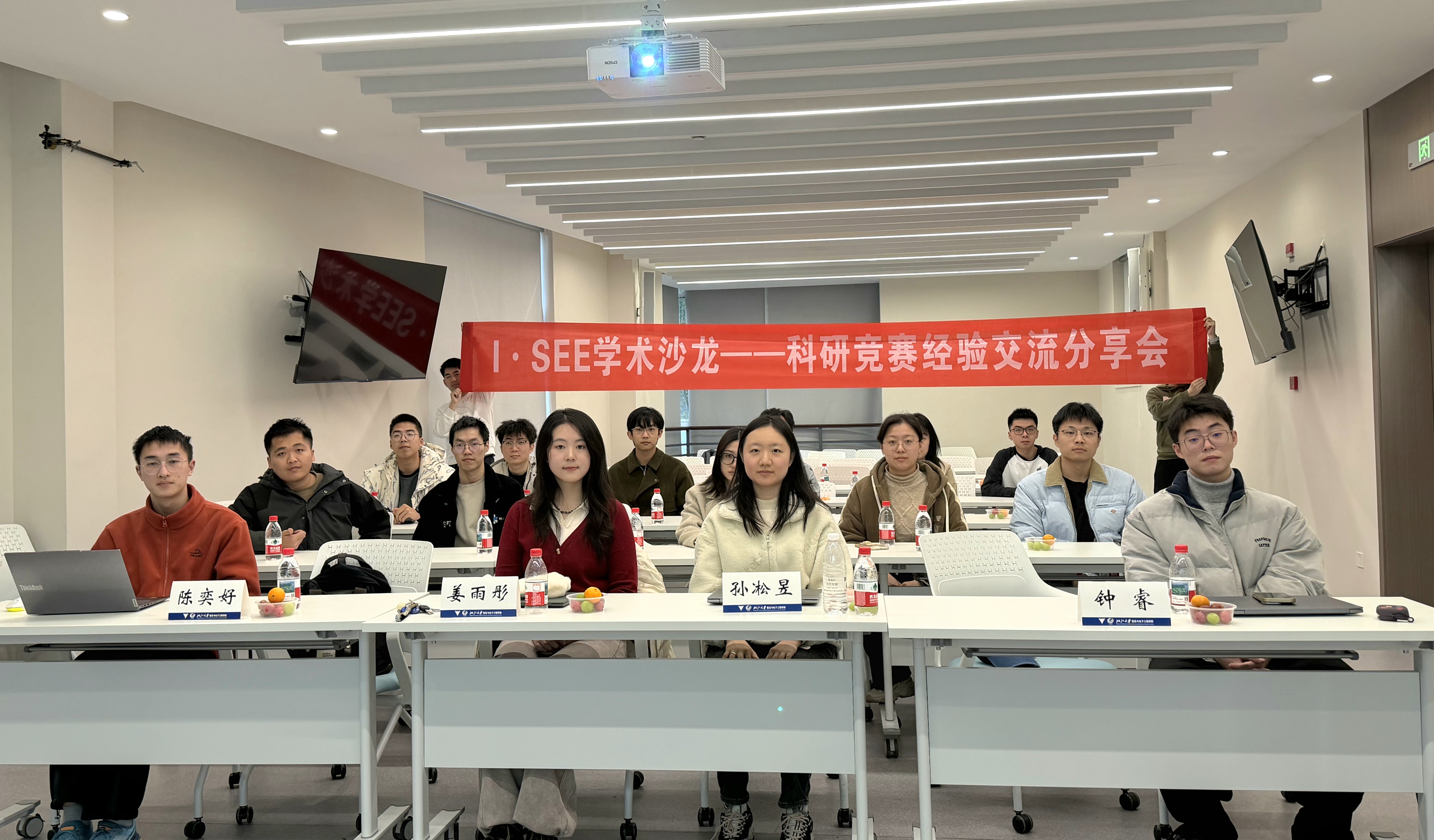 分享会现场学术氛围浓厚,四位嘉宾的分享内容详实、见解独到,引发了在场同学的强烈共鸣。在互动问答环节,同学们就科研方向选择、论文撰写瓶颈、竞赛团队协作以及如何平衡学业压力等实际问题与嘉宾进行了热烈而深入的交流。