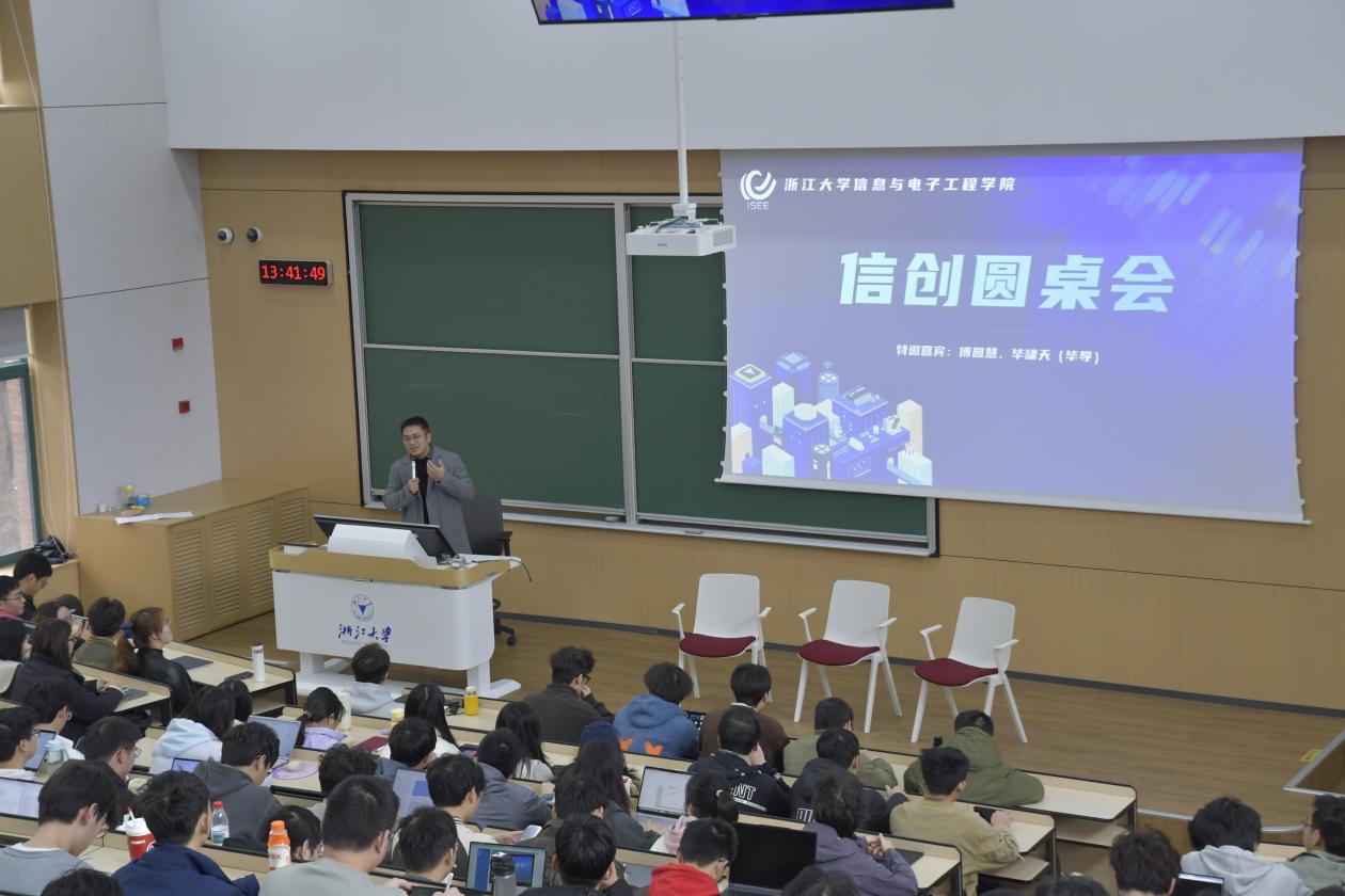 12月2日下午,一场聚焦创新创造与职业生涯发展的思想对话在浙江大学信息与电子工程学院展开。《电子与信息工程技术管理》课程讲座暨信创圆桌会特邀游泳世界冠军傅园慧与知名科普创作者毕导(毕啸天)作为分享嘉宾,与课程负责人张鹿老师同台,与现场二百余位学子展开分享与对话。本次活动也是信电学院“科创建设月”的重要活动之一。