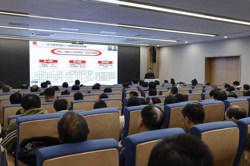 陈红胜在专题报告中强调要深刻认识和把握党的二十届四中全会的重大意义,带领大家共同学习了《中共中央关于制定国民经济和社会发展第十五个五年规划的建议》的核心要义、丰富内涵与实践要求。作为新时代以来党中央制定的第三个五年规划建议,也是全面建设社会主义现代化国家新征程上的第一个五年规划建议,《建议》系统谋划了未来五年我国经济社会发展的目标任务与战略部署,为扎实推进中国式现代化提供了科学的行动纲领。
