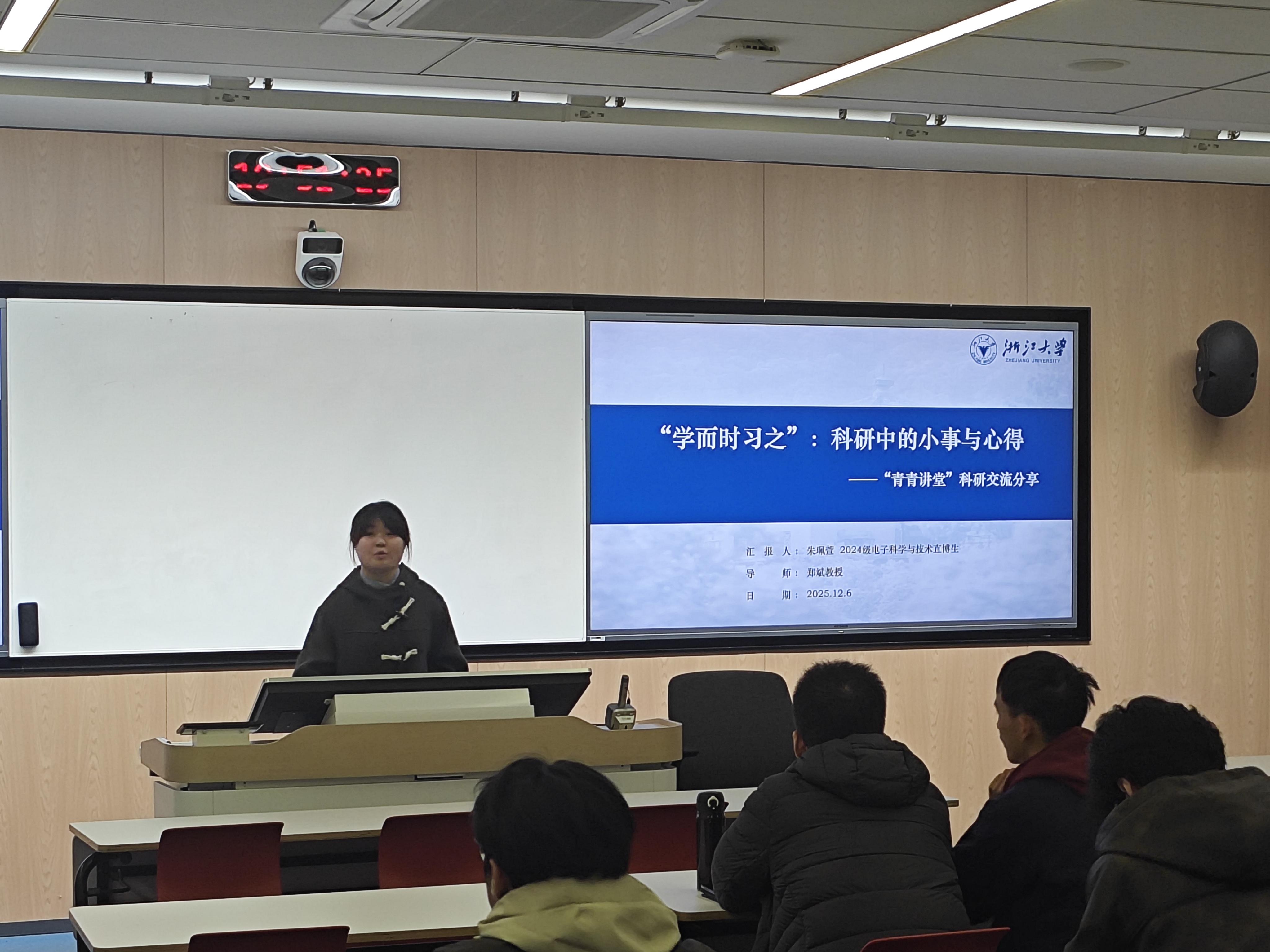 2025年12月6日下午,信息与电子工程学院电子科学与技术2301班团支部牵头组织全体同学,成功举办以“传承科学家精神,探索科研之路”为主题的“青青讲堂”科研交流活动。活动创新设置事迹分享、专家引领、学长传经三大环节,为同学们搭建起感悟精神内核、链接科研实践的优质交流平台,实现了精神传承与能力赋能的有机统一。