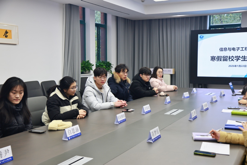 寒假伊始,春节将至。为深入了解寒假留校学生的学习生活情况,传达学院的关怀与问候,2026122日上午,信电学院在第一教学大楼223会议室举行寒假留校学生慰问座谈会。学院党委副书记艾静,辅导员周晓馨、陈梦瑶、舒健航、余正楷与留校学生代表齐聚一堂,亲切交流,共迎新春。