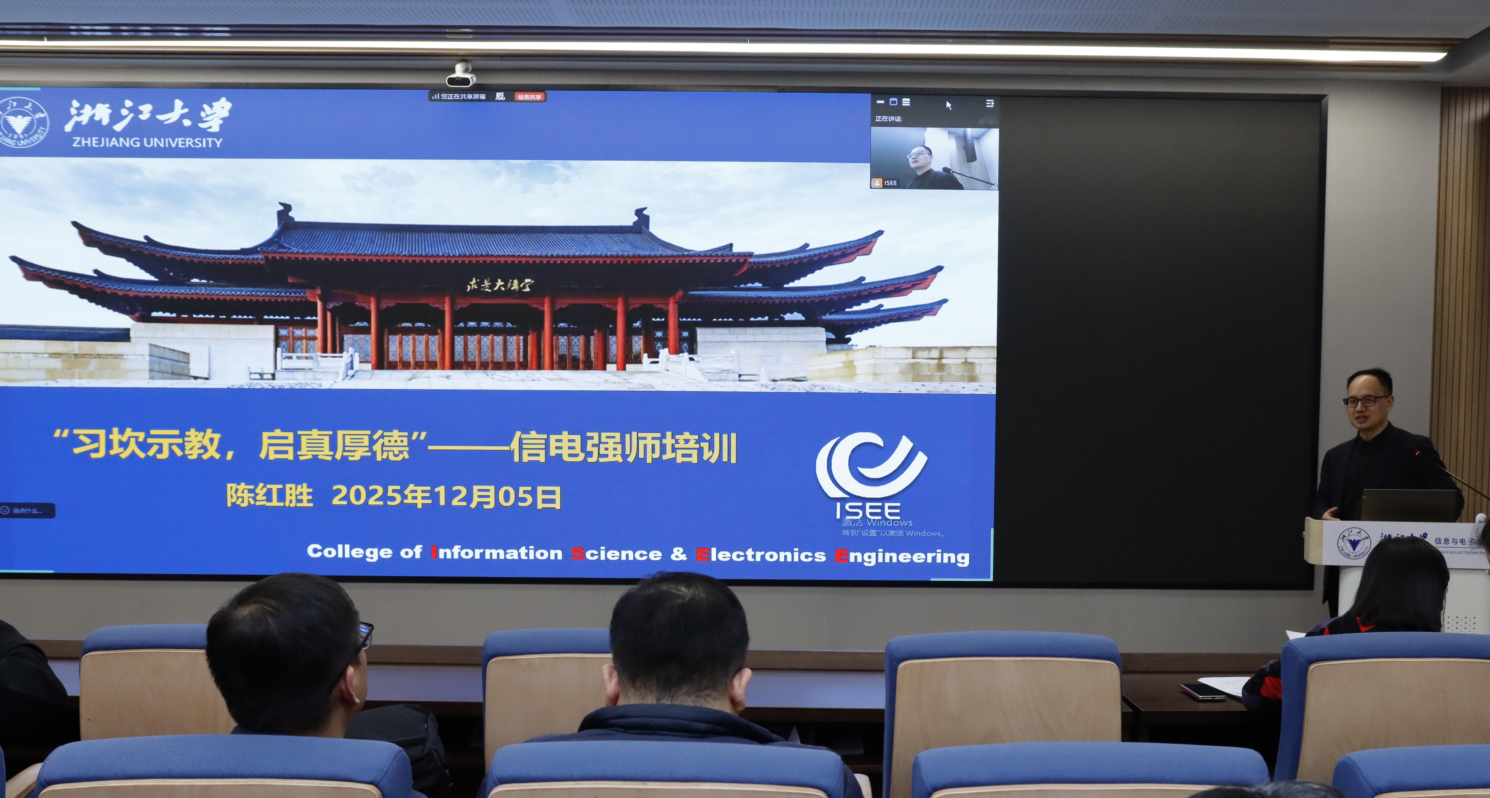 为进一步提升学院导师队伍专业素养、指导能力与育人水平,夯实导师在人才培养过程中的核心作用,信电学院“求是导师学校” 于12月5日下午在玉泉校区教一102报告厅举行。院长陈红胜以“习坎示教 启真厚德”为题做报告...