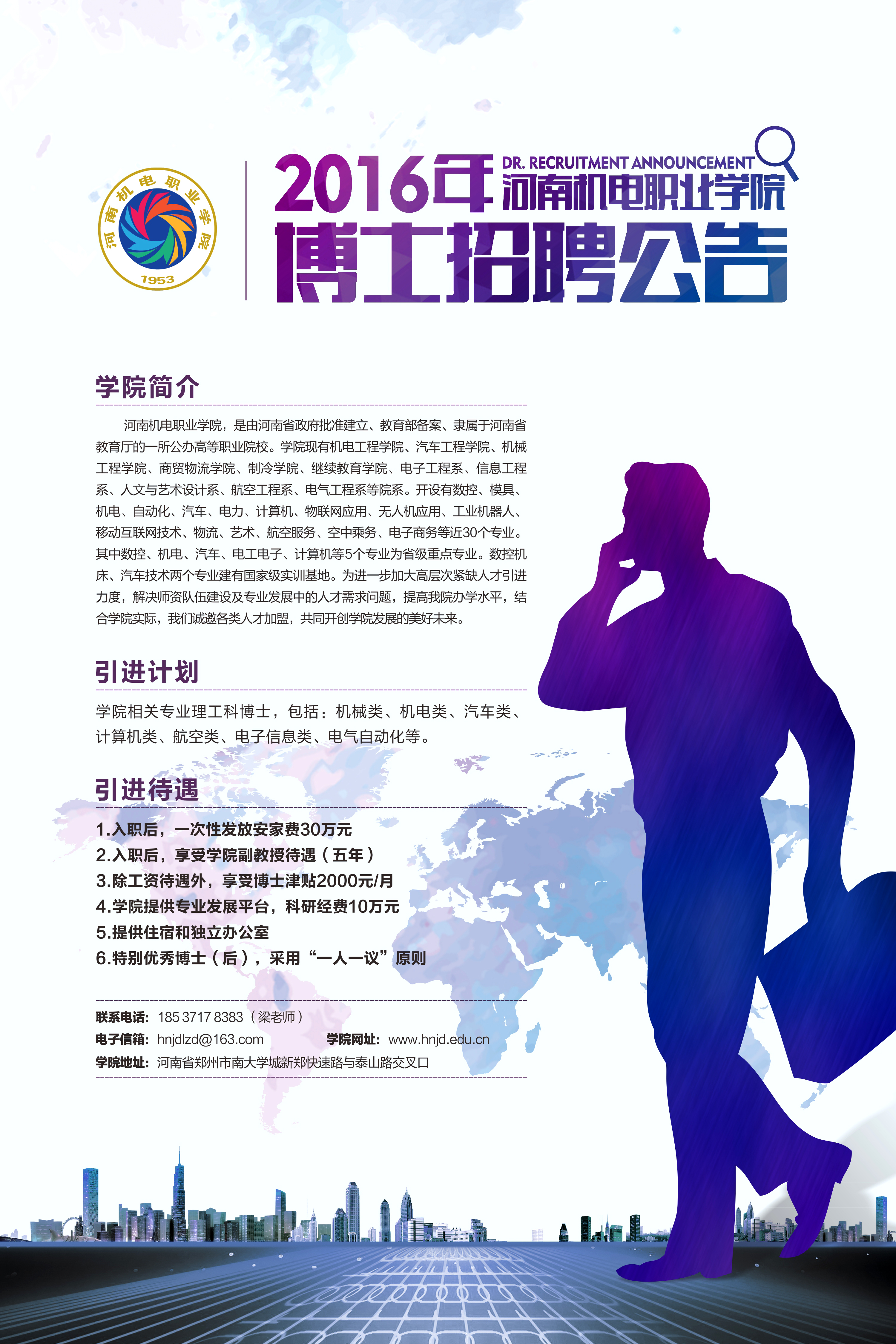 通讯地址:中国河南省郑州市南大学城河南机电职业学院组织人事部 邮编:451191