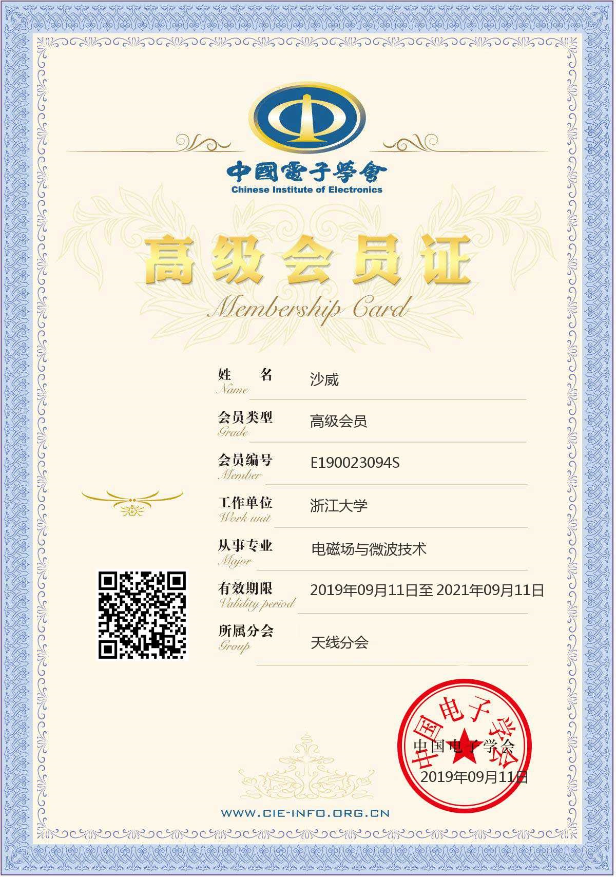 2019/09 Senior Member of Chinese Institute of Electronics.