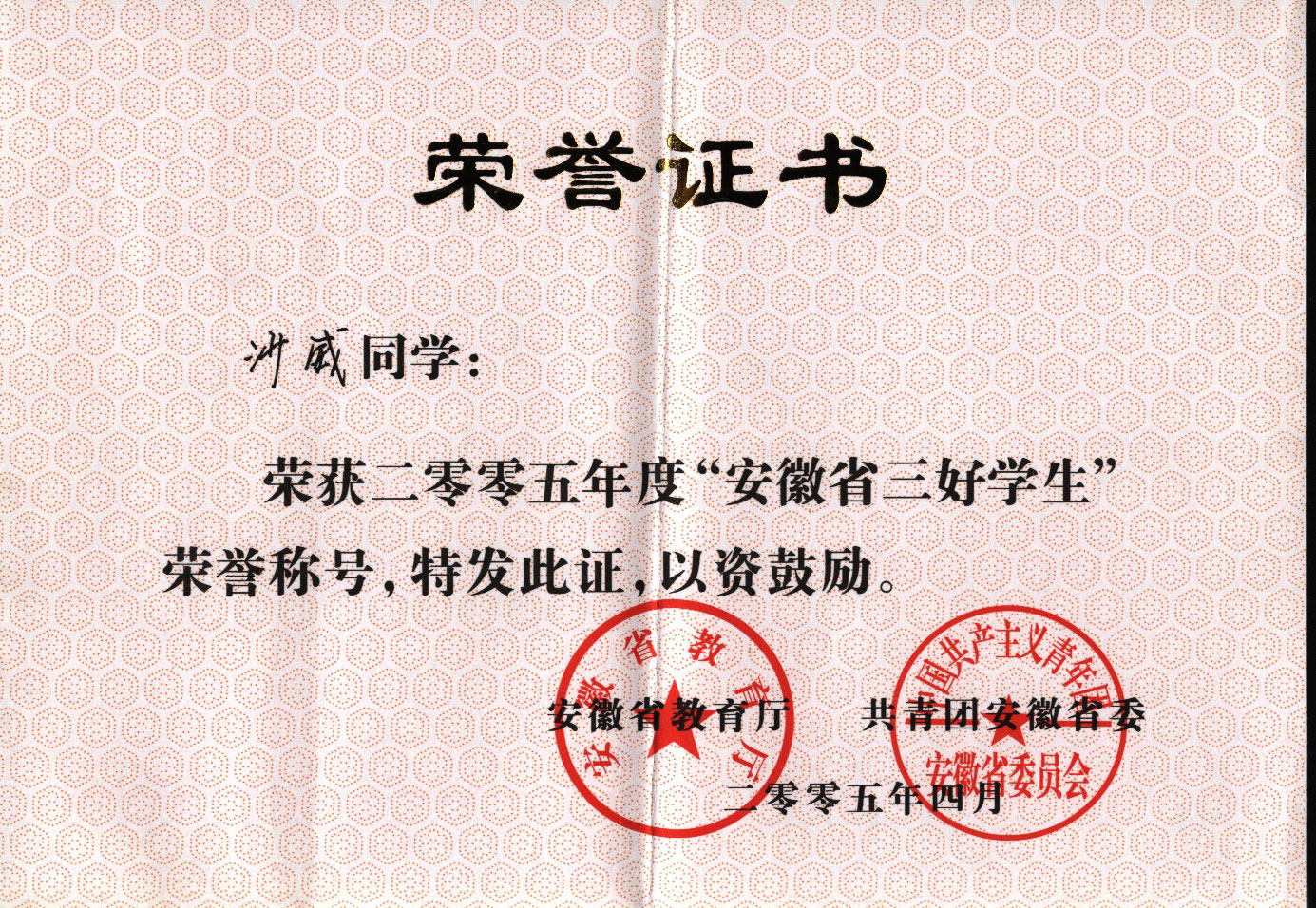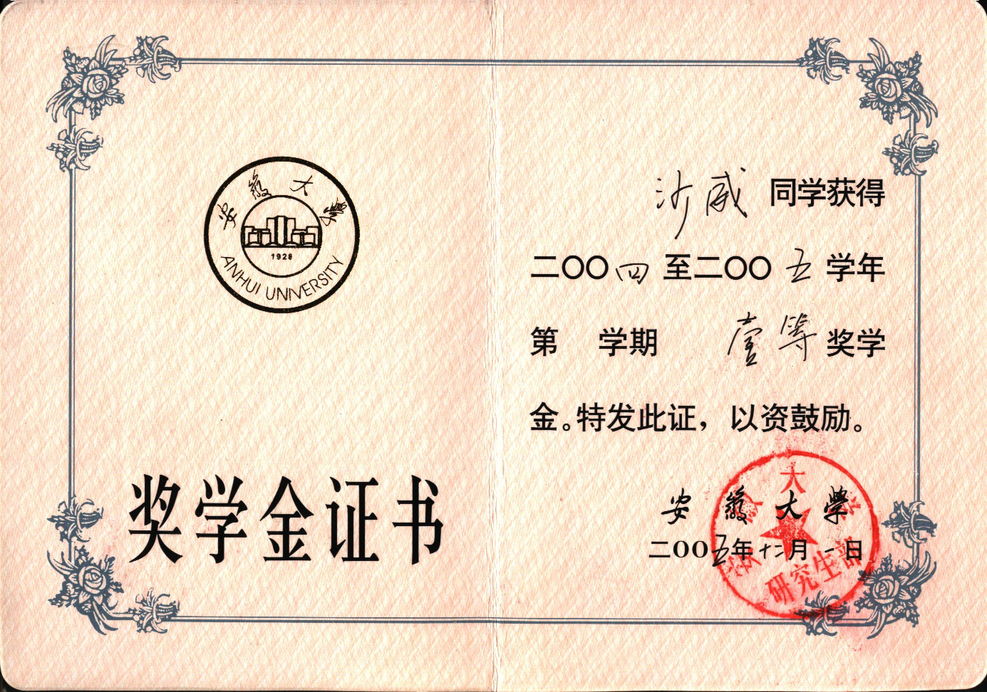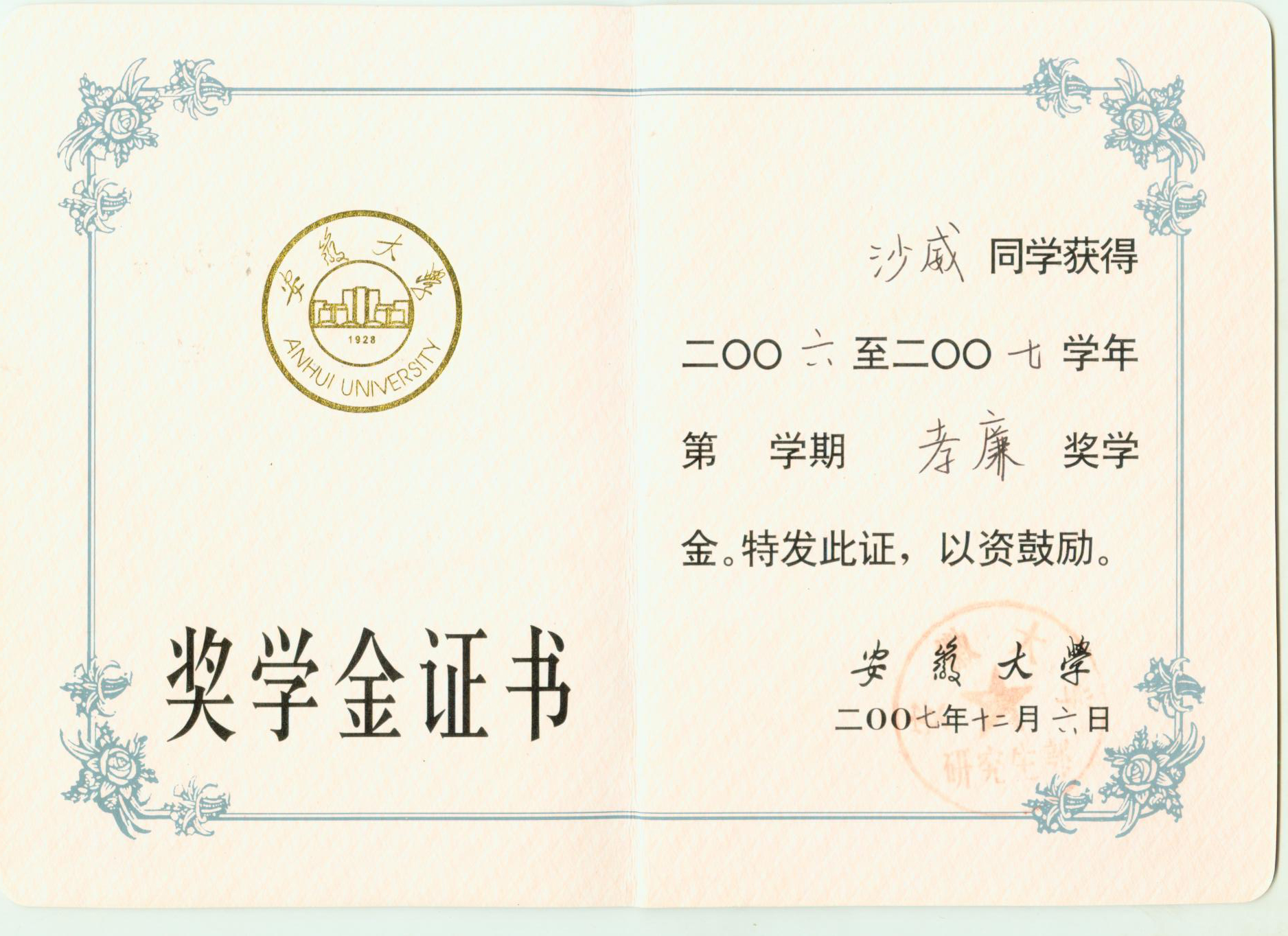 2005/09 Monitor of Doctoral Students in Anhui University. (Sep. 2005—Sep. 2008)