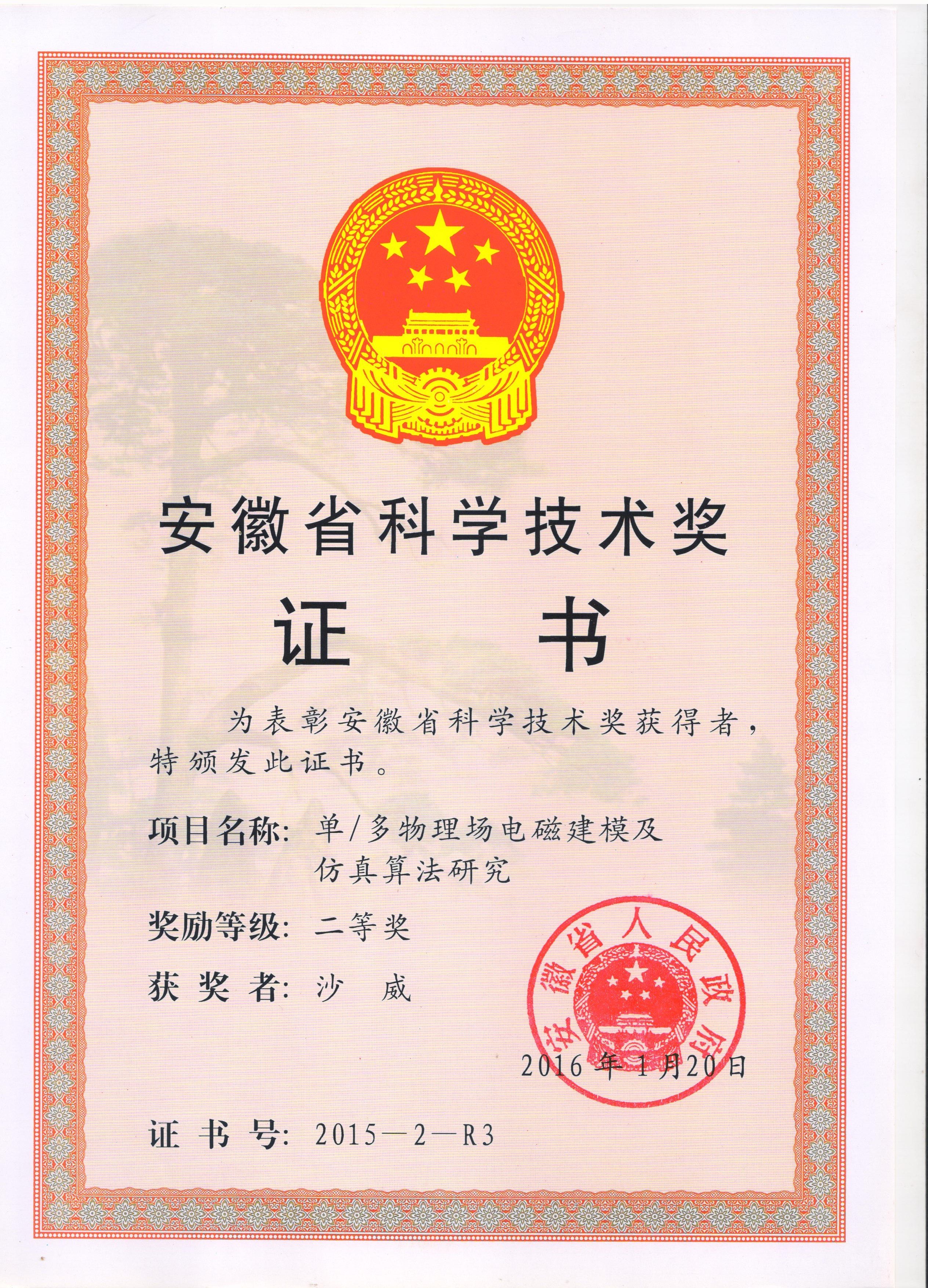 2015 Second Prize of Science and Technology from Anhui Province Government.