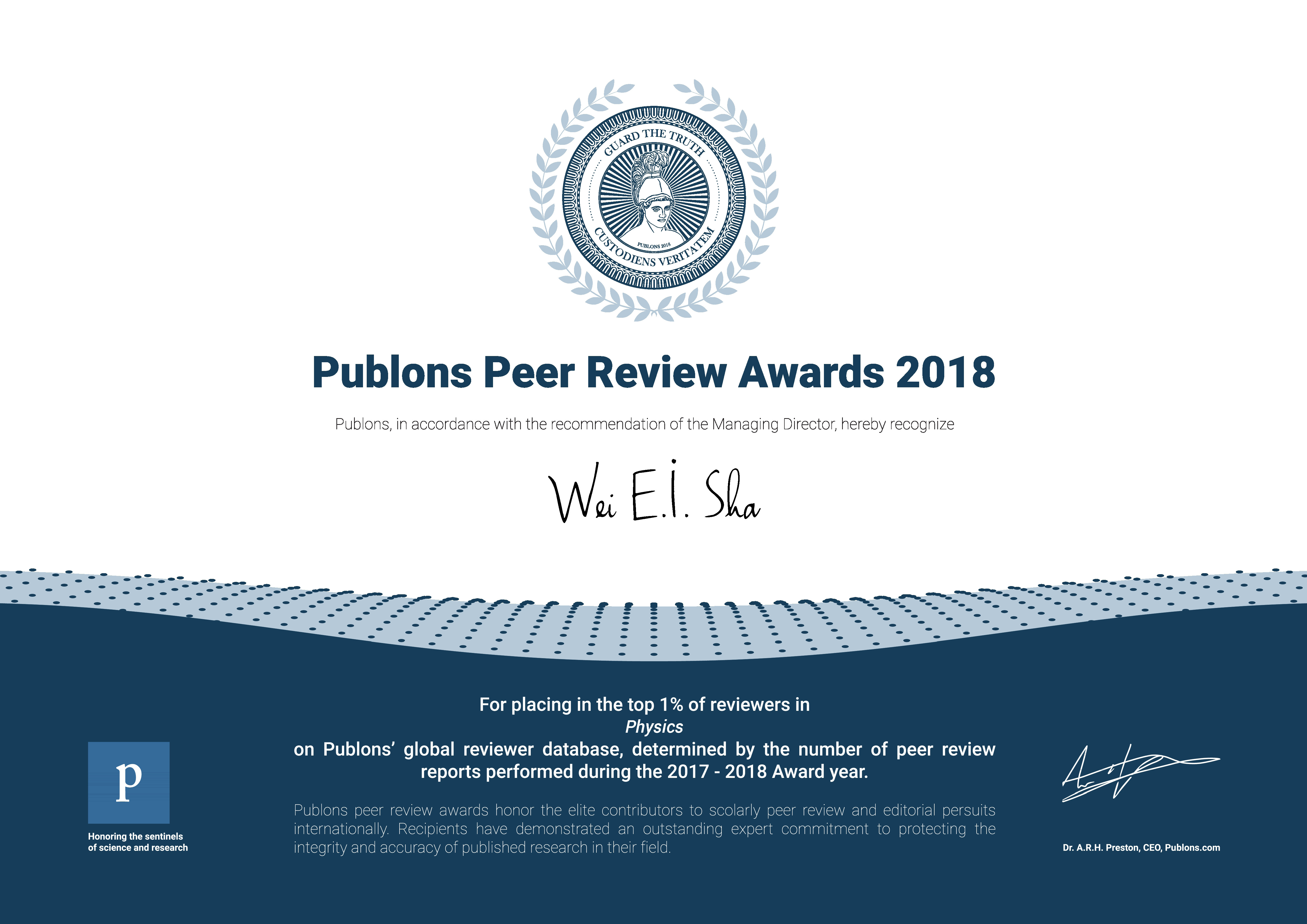 2014/10 Outstanding Reviewer of Journal of Computational Physics.