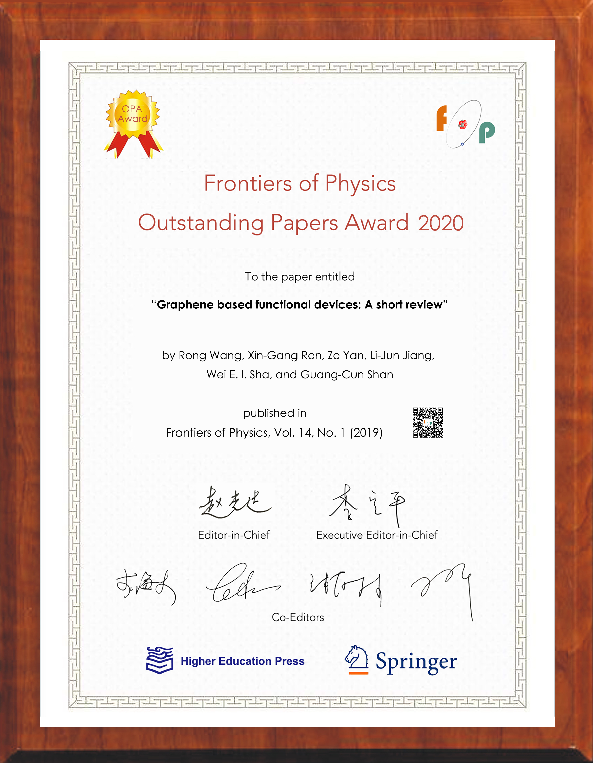 2020 Outstanding Paper Awards 2020 in Frontiers of Physics.