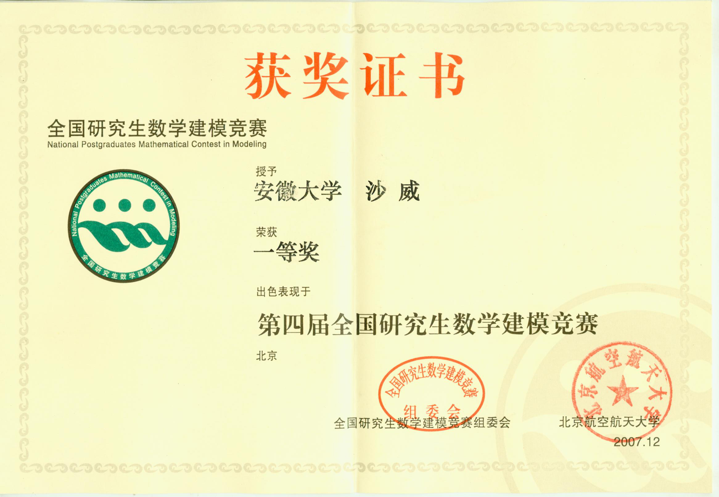 2007/09 Advisor of Mathematical Contest in Modeling Team, Anhui University.
