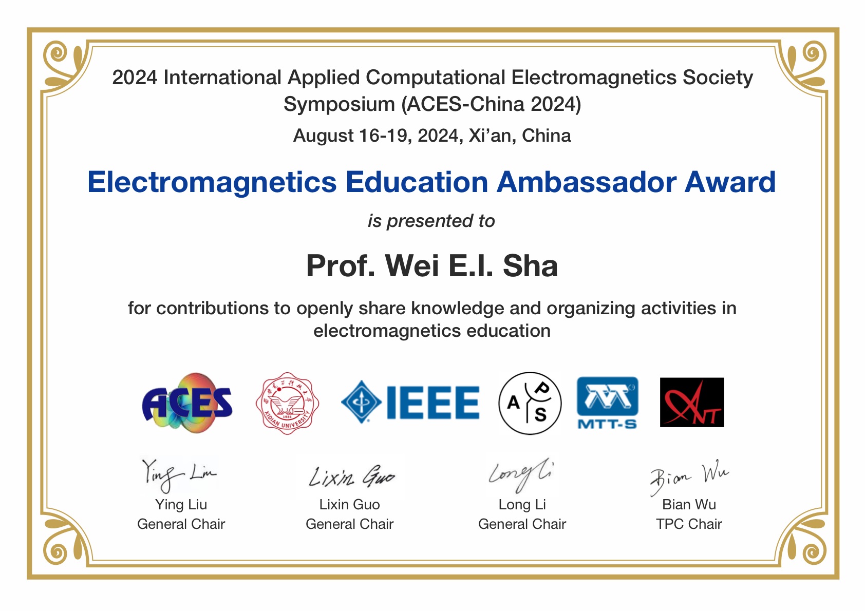 2024 ACES-China Electromagnetics Education Ambassador Award.
